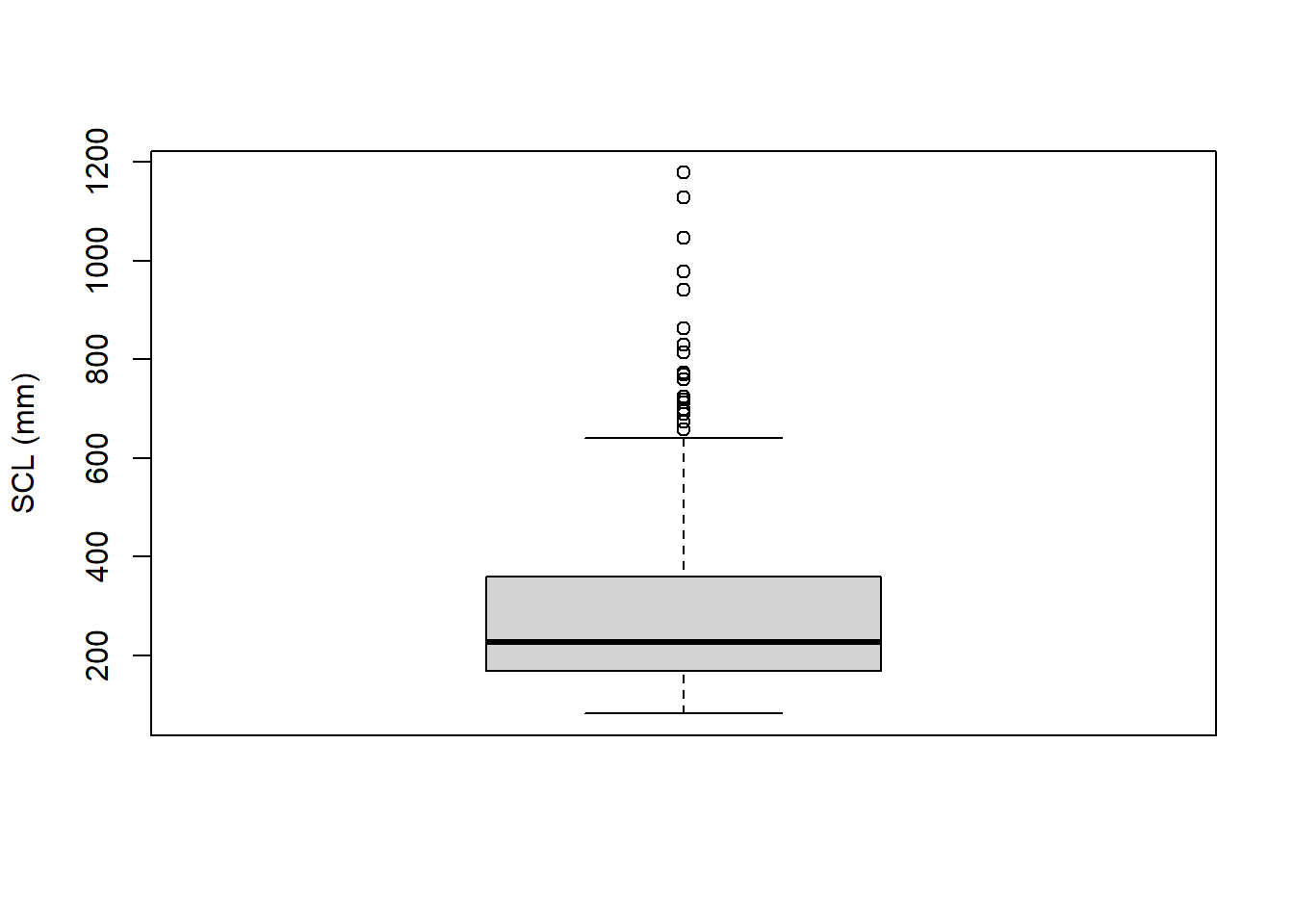boxplot(size.meas$SCL, ylab = "SCL (mm)")